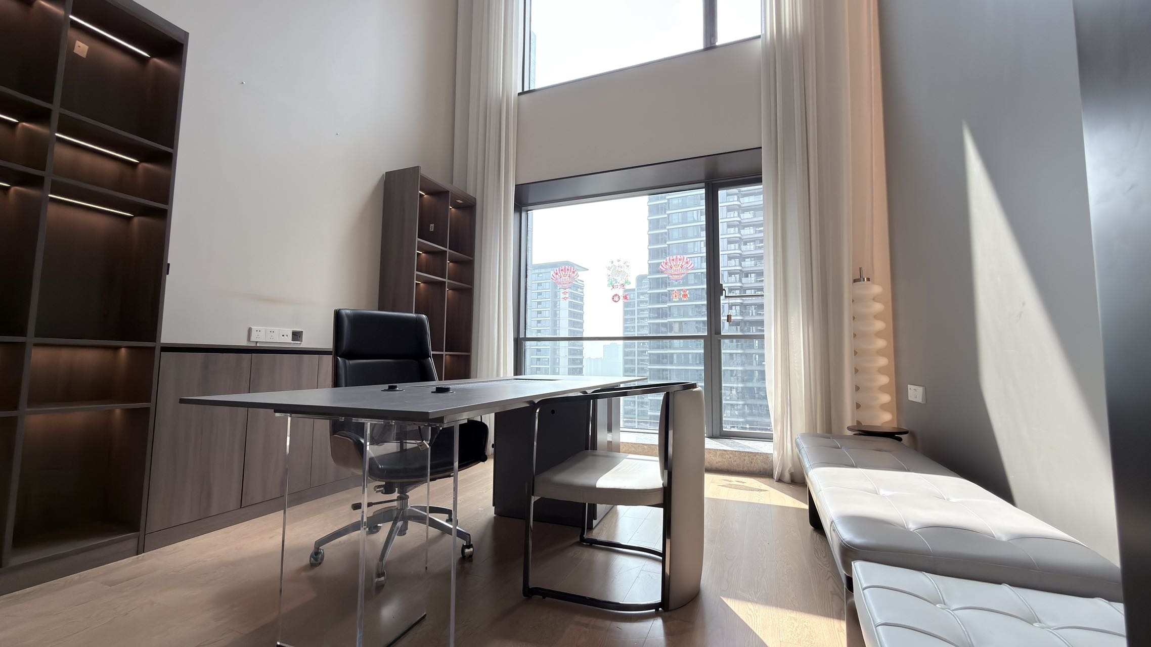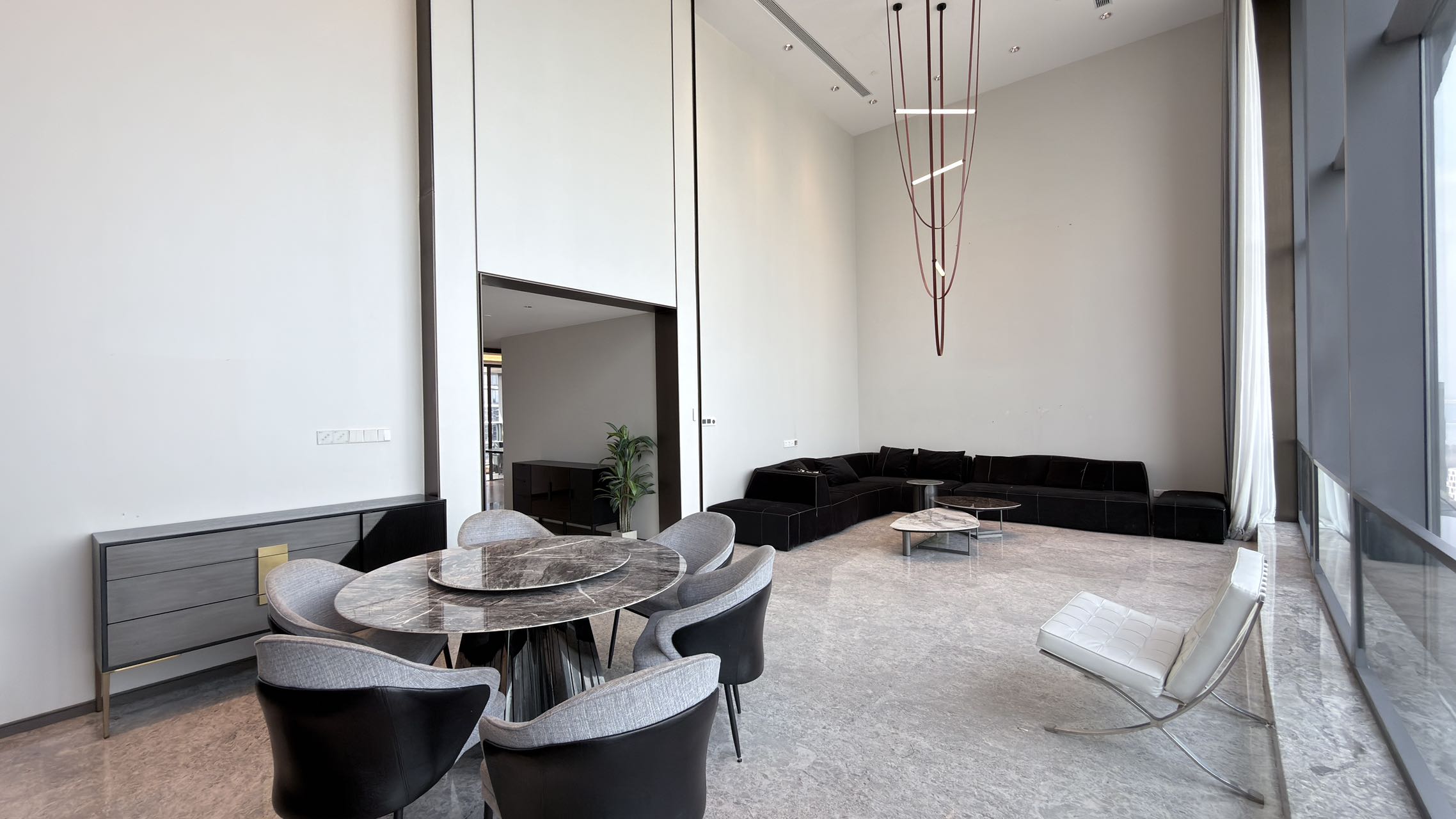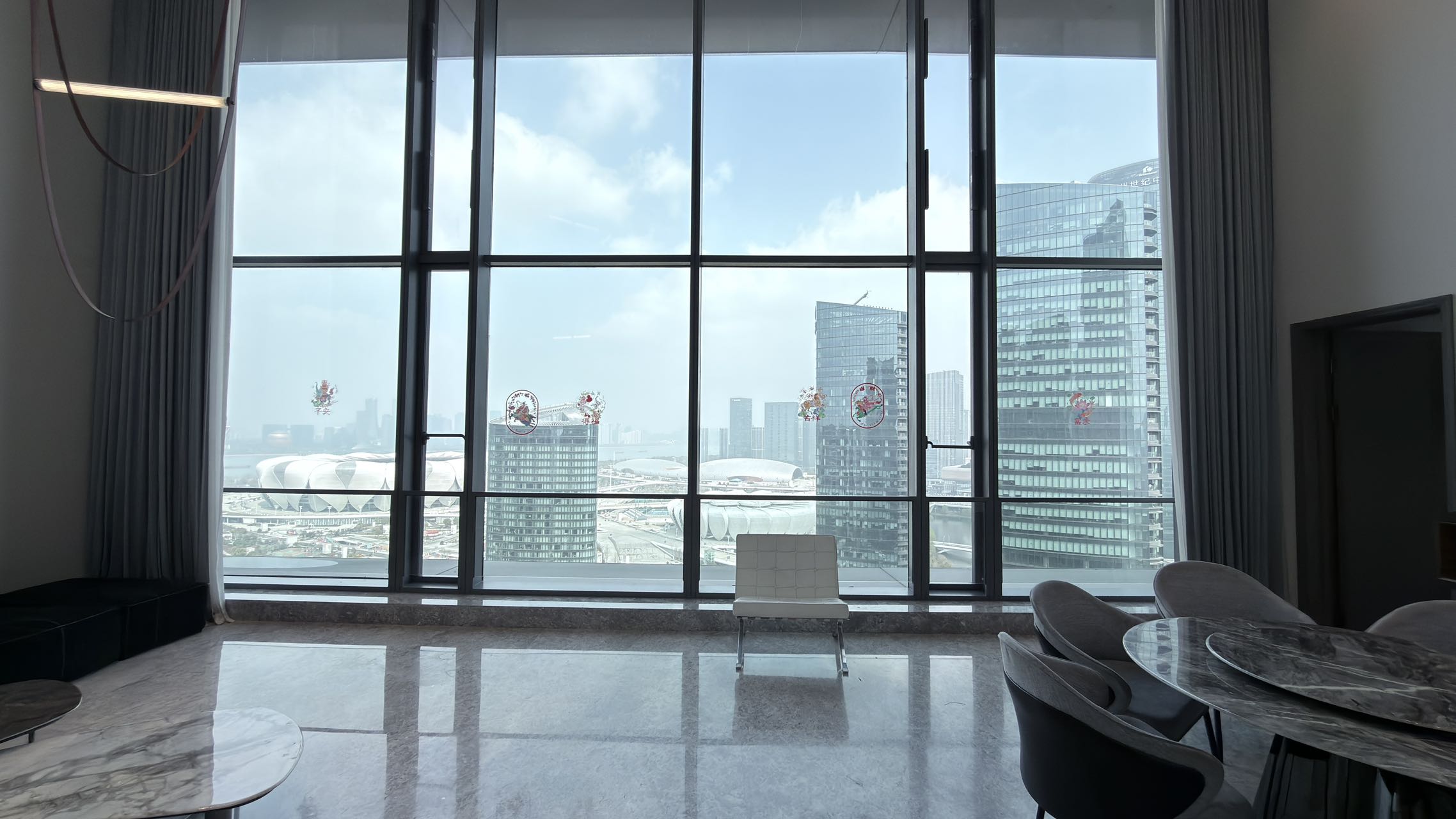 Unobstructed Views: Super 6m high-ceiling living room with direct views of the Asian Games Center | Whole-house custom furniture